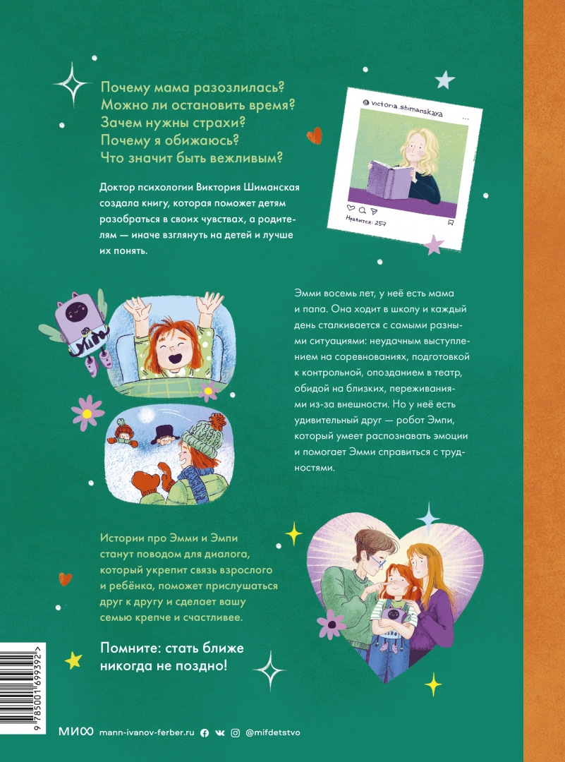 There are many books for the development of emotional intelligence, but they practically do not cover the age of primary school. This book from expert Victoria Shimanskaya closes this gap. Frankly and in a confidential manner, you will be able to discuss with your child topics such as empathy, self-acceptance, personal boundaries, fears, resentments.